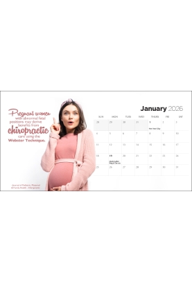 Our 2026 Pregnancy and Kids focused Chiropractic & Wellness Calendar is a perfect addition to your front desk! This 10" x 5.5" inch 12 month desktop calendar serves as a convenient reference for your patients when booking appointments. Display this calendar in plain view for easy access when patients are booking their care plans.